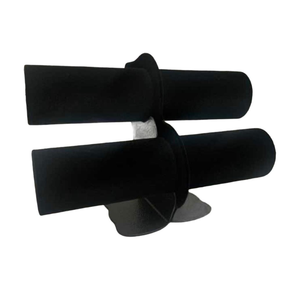 Expositor mostruário duplo para pulseiras, relógios, braceletes - jóias e bijuterias. Revestido: veludo preto Medidas aproximadas: Comprimento: 23cm Altura: 15cm Diâmetro: 5,5cm 01 peça cor: preto Pronta entrega! EQUIPE L&L EXPOSITORES