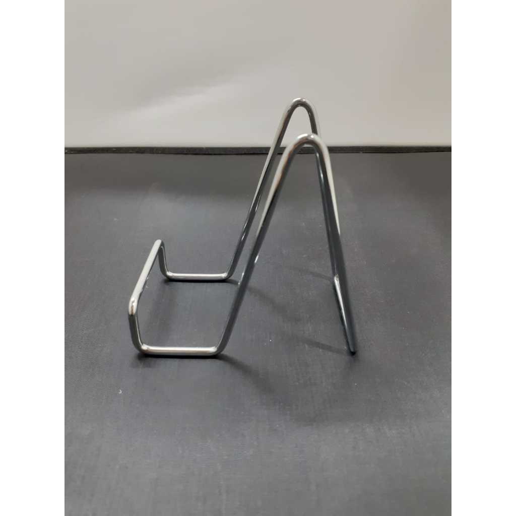 Descrição do produto Expositor Multiuso Cromado Tamanho: P Medidas: A10 X L6,5 X C10cm Uso: para Exposição de Carteiras , Cartão, Livros, Celulares entre outros Material: Ferro Cor: Cromado Produto Resistente