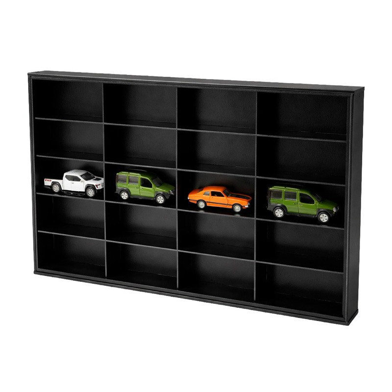 expositor para 20 carrinhos escala1.43 em mdf pintado cor preta +acrilico