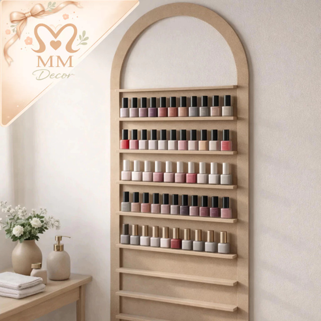 | Arco Porta Esmalte de Parede expositor com 10 prateleiras MDF CRU | R$ 87,89 | 15% | 4.9/5 | 172 |