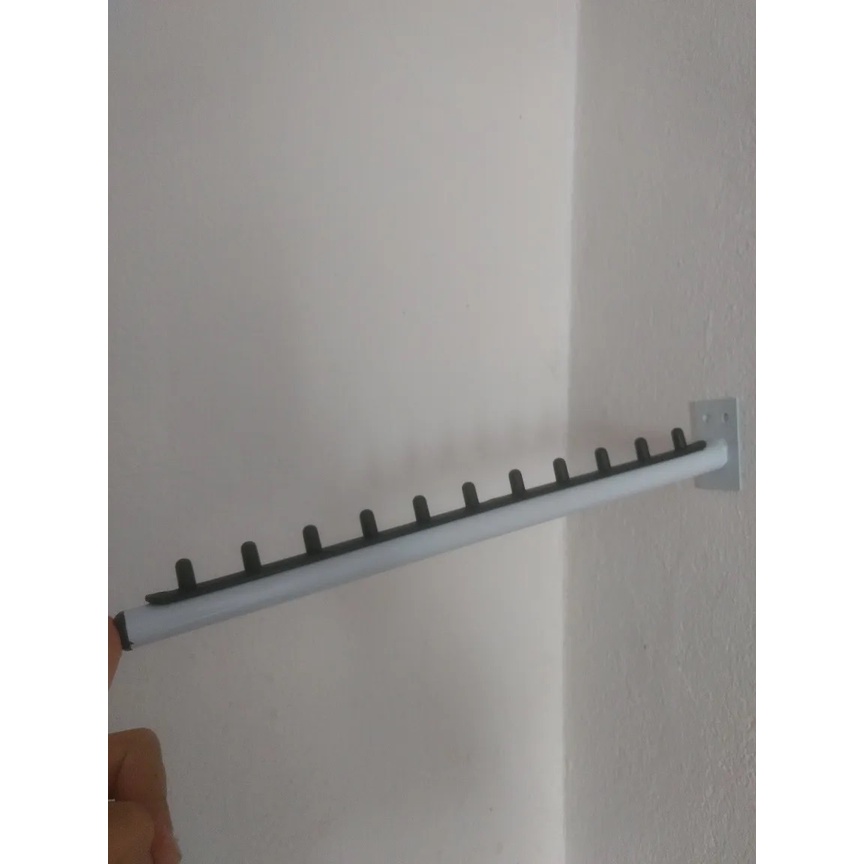 RT DE PAREDE - Capacidade para 20 a 25 kg - Acomoda 10 cabides - Material: Tubo de aço - Chapa que fixa na parede de 1,5 com o dobro de resistência - Pintura: epóxi - Disponíveis na cor branca com a régua preta - Medida de diâmetro 1 polegada - Arara rt parede 0,40cm - 1 unidade - Modelo: Inclinado - Inclinação de 8 graus - Temos kit com 5, 10, 15, 20, 30, 40 com frete único, caso queira acima de 5 peças basta mandar uma pergunta para o vendedor que direcionamos o link correto. - PRAZO DE POSTAGEM EM 24 HORAS APÓS A CONFIRMAÇÃO DE PAGAMENTO ! - TEMOS A PRONTA ENTREGA.