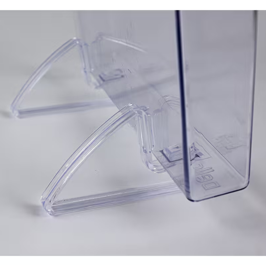 **Descrição:** Expositor DelloColor, "Conheça o Expositor DelloColor, a solução versátil para organizar e exibir documentos ou materiais com praticidade. Produzido em poliestireno, ele é resistente e moderno, ideal para diversos ambientes. O Expositor DelloColor pode ser utilizado de duas formas: sobre a mesa, com pés removíveis, ou fixado diretamente na parede, adaptando-se às suas necessidades. Funcional e estiloso, é perfeito para organizar papéis no escritório ou expor materiais em locais de atendimento. Além disso, o expositor tem capacidade para suportar mais de 300 folhas, oferecendo ampla funcionalidade para o seu espaço.