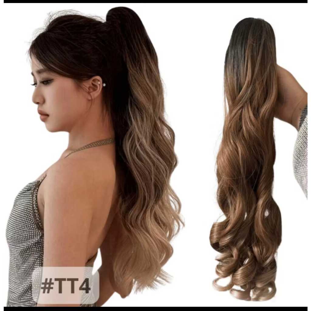 Extensão cabelo morena iluminada rabo de cavalo com presilha/piranha cor morena iluminada
