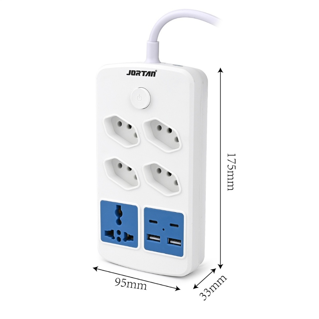 Extensão de Tomada 4 Entradas + USB e Type-C | 2500W | Com Proteção Contra Sobrecarga A Extensão de Tomada 4 Entradas com USB e Porta Type-C é a solução ideal para quem busca praticidade, segurança e eficiência no uso diário de aparelhos eletrônicos. Projetada para oferecer alto desempenho e proteção, ela permite conectar múltiplos dispositivos ao mesmo tempo, garantindo organização e tranquilidade. Características Principais: Interruptor com proteção contra sobrecarga, desligando automaticamente em caso de risco. 4 tomadas padrão brasileiro (3 pinos). 1 tomada universal compatível com diversos padrões internacionais. 2 portas USB + 2 portas Type-C com suporte a carregamento rápido. Faixa de cobre interna para maior condutividade e durabilidade. Produto bivolt: 100 a 250V. Dimensões: Altura: 175 mm Largura: 95 mm Espessura: 33 mm Especificações Técnicas: Corrente máxima: 2,4A Potência total das portas USB: 12W Potência de saída USB individual: até 2,4A Entradas disponíveis: 4 tomadas, 1 tomada universal, portas USB e Type-C Indicações de Uso: Escritórios e home office Áreas de estudo Carregamento de celulares, tablets, fones, power banks e demais acessórios Conexão de dispositivos eletrônicos do dia a dia A extensão oferece segurança, organização e eficiência, sendo ideal para quem precisa de múltiplas conexões em um único equipamento confiável e moderno.