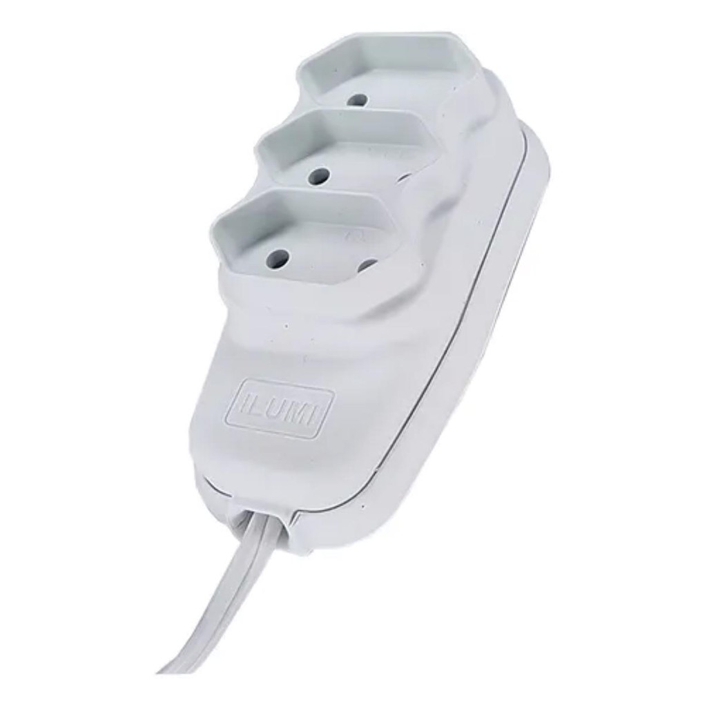 Extensão Elétrica 10 Metros C/3 Tomadas Bipolar ILUMI Tomada Linha Energia Filtro Cabo