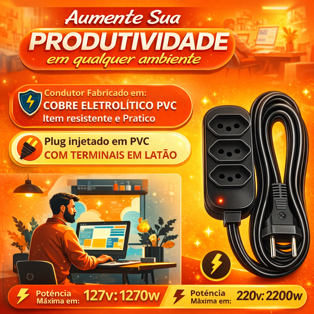 BENEFÍCIOS: 🏷️ Marca: Plug Plus 🛠️ Material: Cabo em PVC resistente e flexível Condutor interno em cobre eletrolítico Plug injetado com terminais em latão Tomadas padrão brasileiro (3 furos) 📏 MEDIDAS: Disponível nos tamanhos: • 2 metros • 3 metros • 5 metros • 10 metros Potência Máxima: • 127V: até 1270W • 220V: até 2200W ℹ️ IMPORTANTE: Produto Bivolt (127V / 220V) Ideal para TVs, videogames, notebooks, carregadores, aparelhos de som e eletrônicos em geral. Não utilizar acima da potência máxima indicada. Compra Segura Com Garantia Shopee ✅ Somos Vendedores Indicados Pela Shopee. ✅ Enviamos dentro de 6 horas úteis. ✅