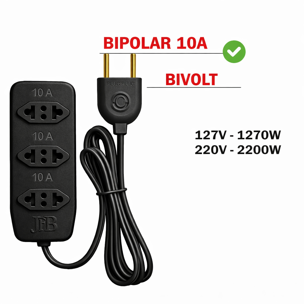 🚀 ENVIO RÁPIDO | PRONTA ENTREGA 🚀 🔌 Extensão Elétrica 3 Tomadas Tripolares – Bivolt – 10A Cabo Prolongador nas metragens: 2m | 3m | 5m | 10m Solução prática, segura e econômica para o dia a dia. Ideal para quem precisa de mais alcance e organização na hora de ligar seus aparelhos elétricos. ⚠️ ATENÇÃO ❌ Uso não recomendado para aparelhos 20A ✔️ Indicada apenas para equipamentos de baixa potência ✅ PRINCIPAIS CARACTERÍSTICAS ✔️ 3 Tomadas Tripolares (10A) ✔️ Bivolt – funciona em 127V e 220V ✔️ Cabo resistente com excelente condução elétrica ✔️ Disponível nas metragens: 2, 3, 5 ou 10 metros ✔️ Cor branca, discreta e combina com qualquer ambiente ✔️ Ótimo custo-benefício 📊 INFORMAÇÕES TÉCNICAS Tipo de cabo: Condutor paralelo Seção do cabo: 2 x 1,0 mm Potência máxima em 127V: 1270W Potência máxima em 220V: 2200W Tensão máxima: 250V 🛠️ CONSTRUÇÃO DE QUALIDADE Condutor: Cobre eletrolítico com isolamento em PVC Tomadas: Injetadas em polipropileno, com terminais em latão Plug: Injetado em PVC, com terminais em latão ✔️ Certificação válida para o plugue ✔️ Certificação válida para a tomada 🏠 IDEAL PARA USO EM: ✔️ PCs e notebooks ✔️ TVs ✔️ Rádios e aparelhos de som ✔️ Eletrodomésticos em geral de baixa potência ✔️ Escritório, casa, quarto ou sala 💡 Extensão elétrica econômica, segura e funcional 👉 Excelente escolha para quem busca praticidade e preço justo!