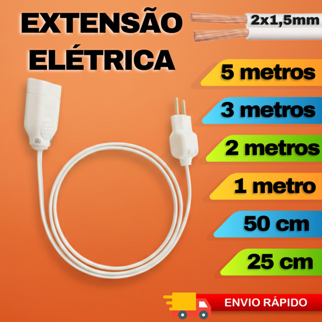 | Extensão Elétrica Reforçada 25cm/50cm/1m/2m/3m/5m Cabo Prolongador ... este produto | R$ 25,57 | — | 5.0/5 | 26 |