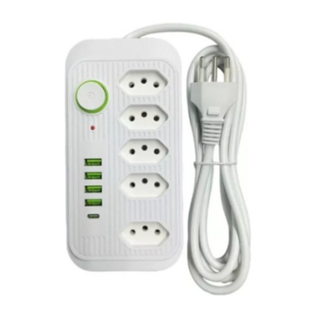 Extensão Filtro De Linha Segurança 5 Tomadas 4 Usb E Usb C Envio Imediato