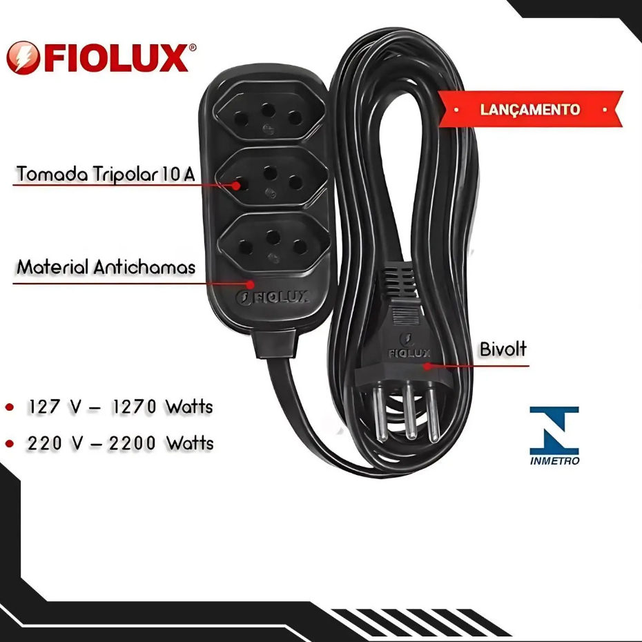 Extensão Tripolar Preta Resistente Multiplicador De Saídas 3 Tomadas Energia Vários Tamanhos Cabos