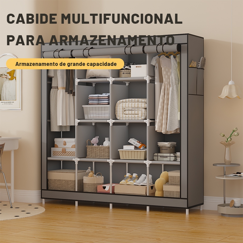 【Extra Grande】Arara Guarda Roupa Dobrável Armário Organizador Multiuso Roupeiro Cabideiro Closet 2 a 3 pessoas usam