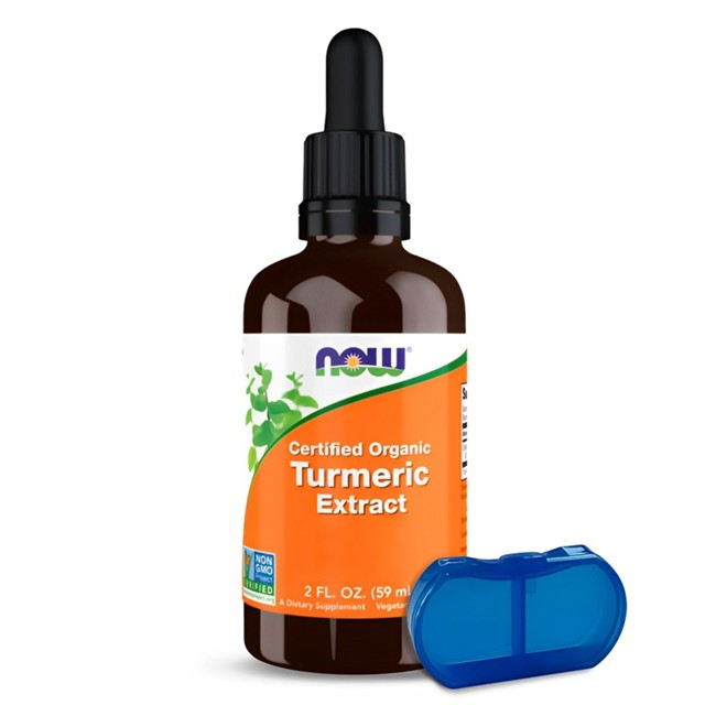 Extrato Cúrcuma Now Foods 59ml Orgânico + Porta Cápsulas