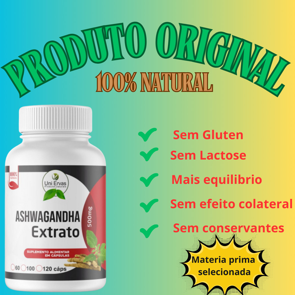 Extrato de ASHWAGANDHA - Puro - Original - 120 capsulas - 500mg