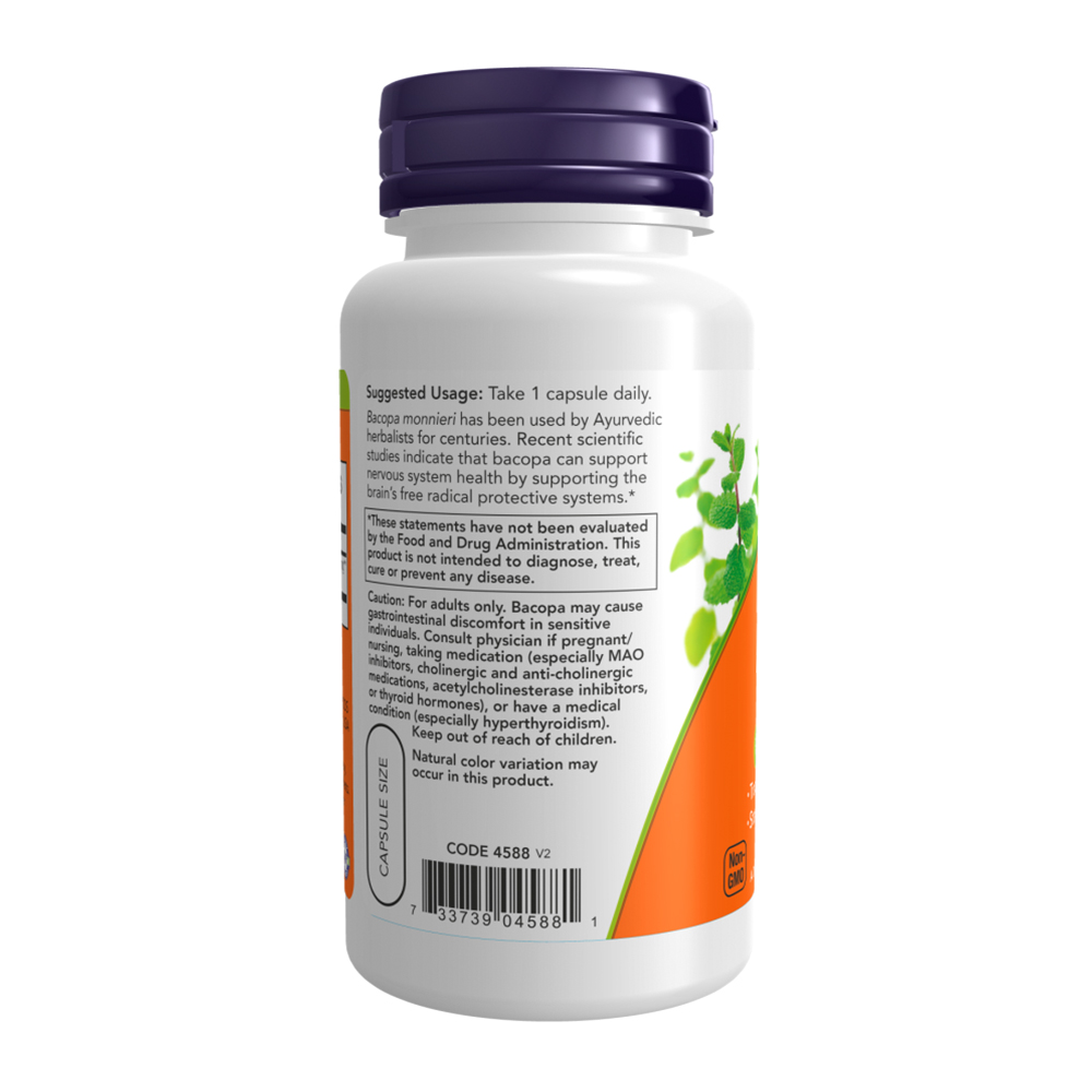 Extrato de Bacopa 450mg Now Foods 90 Cápsulas Importado + Porta Cápsulas