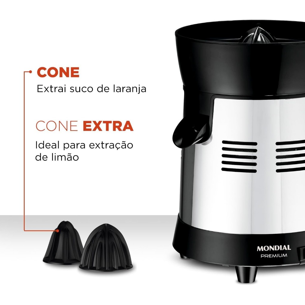 Extrator de Sucos Turbo Premium Mondial 250W - Bivolt, Preto/Inox - (E-10)