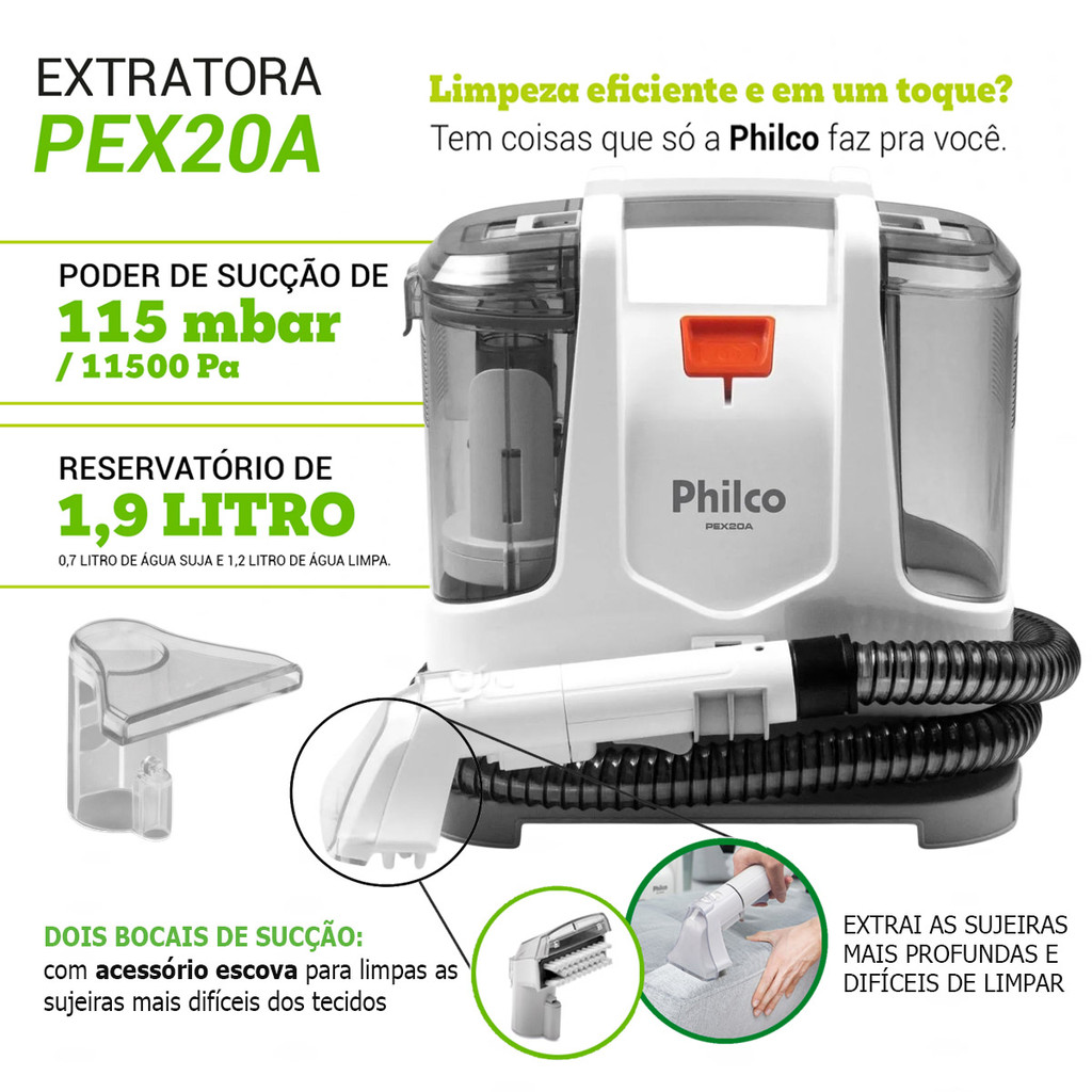 Extratora de Sujeira Limpa Estofados Carpetes Portatil 1600W PEX20A Philco