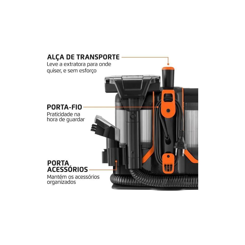 Facilite sua rotina de limpeza e consiga resultados de higienização profunda com menos esforço com a Extratora Portátil Deep Cleaner II Mondial. Com potência de 1.800W, ela oferece a força necessária para borrifar, esfregar e extrair a sujeira de forma prática. A mangueira flexível de 2,2 metros e o cabo elétrico de 5 metros, permitem alcançar áreas distantes, sem interrupções para troca de tomada. Além disso, a EXP-02-O vem equipada com 2 bicos diferentes para extrair a sujeira de várias superfícies, como estofados, tapetes, sofás, bancos de carro, entre outros. Conheça todos os detalhes da Deep Cleaner II Mondial EXP-02-O: Limpeza Profunda: Solução definitiva para uma limpeza mais efic. Borrife, esfregue e extraia até as sujeiras mais difíceis, deixando qualquer superfície impecável. Potência de 1.800W: Com grande poder de sucção, a extratora portátil Mondial proporciona uma limpeza profunda e eficiente, removendo a sujeira com facilidade. Sistema de Tanques Separados: O tanque de 1,6 litros de água limpa possibilita maior autonomia, enquanto o tanque de 800 ml recebe a água usada e facilita o descarte, tornando o processo mais prático. Maior Alcance: Com mangueira de 2,2 metros e cabo elétrico de 5 metros, a extratora e higienizadora acessa áreas distantes, permitindo uma limpeza mais completa e sem interrupções para troca de tomada. Função Pet Care: A EXP-02-O foi desenvolvida para também remover facilmente pelos e sujeiras de animais de estimação, proporcionando um ambiente sempre bem higienizado e confortável. Para Diferentes Tipos de Limpeza: Inclui bico extrator grande, bico extrator médio e bico de autolimpeza para a higienização da mangueira. A Deep Cleaner II Mondial é perfeita para uso em carpetes, sofás, colchões, carros, tapetes e estofados. Armenamento prático: Organize tudo com facilidade Com porta-acessórios, você mantém todos os itens em um só lugar, facilitando o armenamento do produto em espaços reduzidos. Alça de transporte: Leve a extratora para onde quiser, sem esforço. Porta-fio: Praticidade na hora de guardar. Um Ano de Garantia Mondial: A Mondial é a escolha de milhões de consumidores. Mondial, a escolha inteligente :: Modelo - EXP-02-O :: Ean 127v - 7898578155177 :: Ean 220v- 7898578155184 :: Marca - Mondial :: Acessórios -2 bicos diferentes (bico extrator grande, bico extrator médio e bico de autolimpeza) :: Capacidade do Reservatório de Pó - 800 ml :: Capacidade do Reservatório de Água - 1,6 litros :: Comprimento do Cabo de Energia - 5 metros :: Formato do Eletroportátil - Portátil :: Funcionalidades do Aspirador - Borrifar, esfregar e extrair a sujeira, Função Pet Care, Autolimpeza da mangueira :: Indicação do Aspirador - Extratora Higienizadora :: Linha - Deep Cleaner :: Potência - 1.800W :: Tipo de Reservatório - separados :: Uso - Uso em carpetes, sofás, colchões, carros, tapetes e estofados :: Voltagem - 127 ou 220V Garantia 12 meses