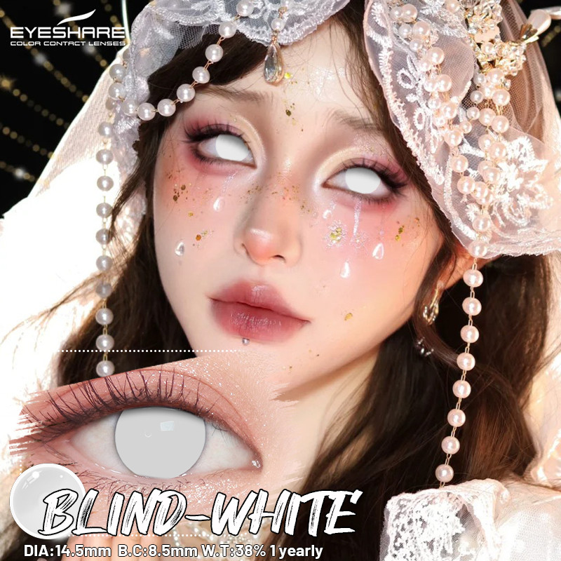 EYESHARE 1 Par De Lentes De Contato Coloridas Brancas , Olhos Fofos , Contatos , Beleza , Halloween , Cosplay , Maquiage