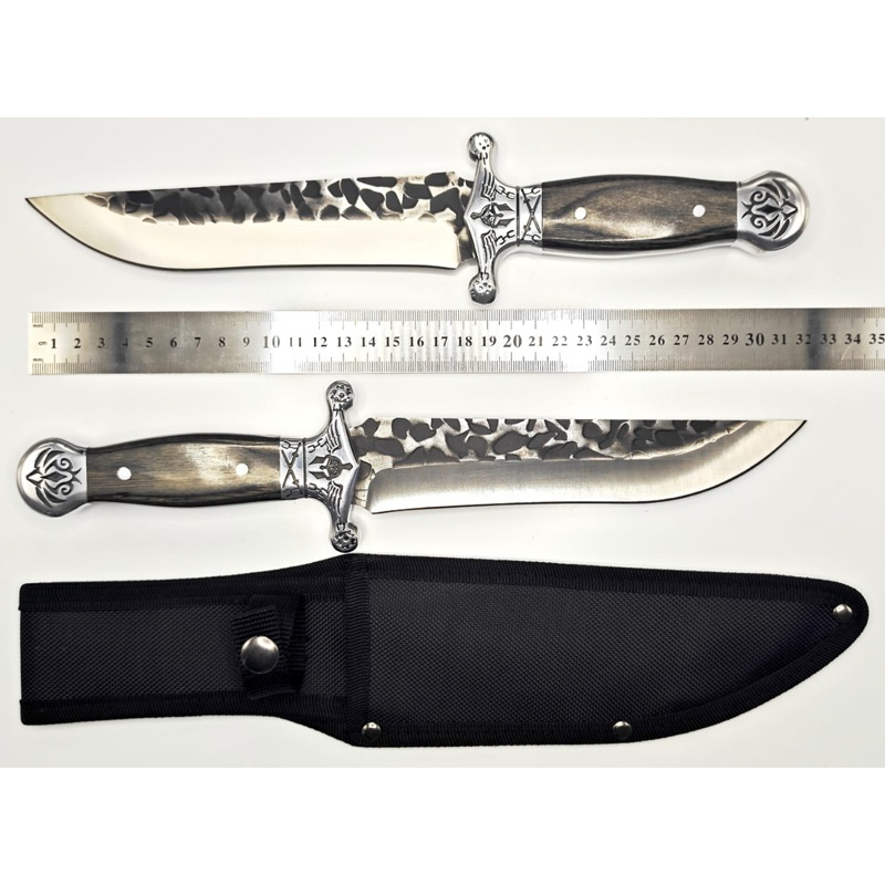 Descrição do produto. Garantia : 90 dias Peso 300g Cor: Inox Cabo: Madeira Dimensões da faca: No modelo de cada variaçao Espessura : 3,5mm Comprimento da faca: No modelo da faca Material cabo: Madeira Material : Aço inox 420 com exímio tratamento térmico trazendo leveza. Ideal para Churrasco. Especial que possibilita durabilidade no fio . Bainha de proteçao MEDIDAS E PESO FACA FULLTANG 1: 31.6 Centimetros / 325 Gramas FACA FULLTANG 2: 32 Centimetros / 342 Gramas FACA FULLTANG 3: 32 Centimetros / 330 Gramas FACA FULLTANG 4: 31.8 Centimetros / 320 Gramas FACA FULLTANG 5: 39.7 Centimetros / 412 Gramas FACA FULLTANG 6: 39.8 Centimetros / 455 Gramas FACA FULLTANG 7: 39.9 Centimetros / 380 Gramas Perguntas e respostas. 1- A faca tem bom corte? Sim. 2- A lâmina escurece, enferruja, oxida? O material por ser inox protege deste problema. 3-Vem com bainha e qual material? Vem com bainha. Escolha seu modelo e realize o pedido. Todos os nossos produtos acompanha nota fiscal.