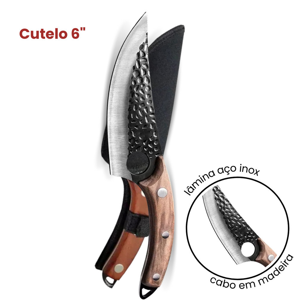 ***PRODUTO A PRONTA ENTREGA COM ENVIO IMEDIATO*** Cutelo Artesanal de 6 Polegadas com Bainha - Perfeito para Carnes, Peixes e Ossos! Descrição do Produto: Apresentamos o nosso Cutelo Artesanal de 6 polegadas, uma ferramenta de corte excepcionalmente versátil que não pode faltar na sua cozinha! Com um design único e artesanal, este cutelo é a escolha perfeita para quem busca qualidade, durabilidade e eficiência. Características Principais: Lâmina Robusta de 6 Polegadas: A lâmina de 9 polegadas é fabricada com aço de alta qualidade, garantindo uma longa vida útil e durabilidade impressionante. Com 3,5mm de espessura, esta lâmina é ideal para enfrentar qualquer desafio na cozinha. Cabo em Madeira: O cabo em madeira de alta qualidade proporciona uma aderência firme e confortável, permitindo que você tenha total controle durante o corte. O design ergonômico do cabo inteiriço proporciona um manuseio seguro e preciso. Acompanha Bainha: O cutelo vem acompanhado de uma bainha resistente, que não apenas protege a lâmina quando não está em uso, mas também torna o armazenamento seguro e conveniente. Garanta o seu Cutelo Artesanal de 6 Polegadas hoje mesmo e eleve a qualidade das suas preparações culinárias a um novo patamar!