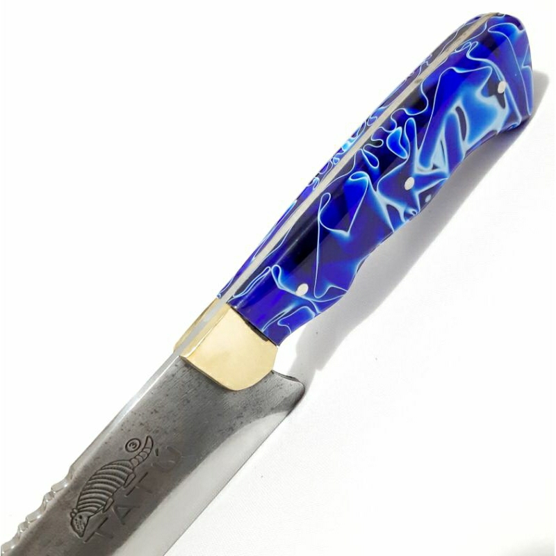 Faca Artesanal Tatu 10" Disco Arado Temperado Cabo Azul com Bainha Couro