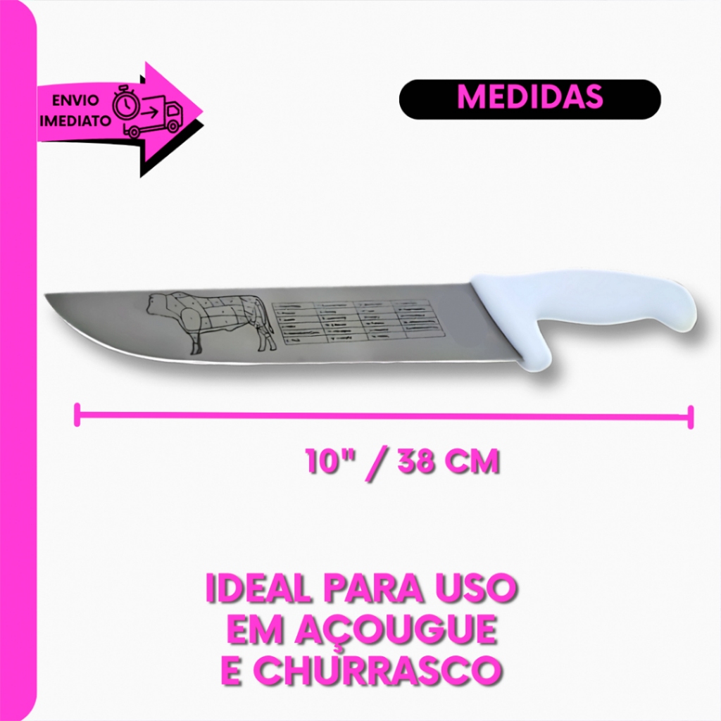 Faca Cabo Branco 12" Aço Inox Profissional Do Açougueiro e Churrasqueiro Para Açougue e Cozinha