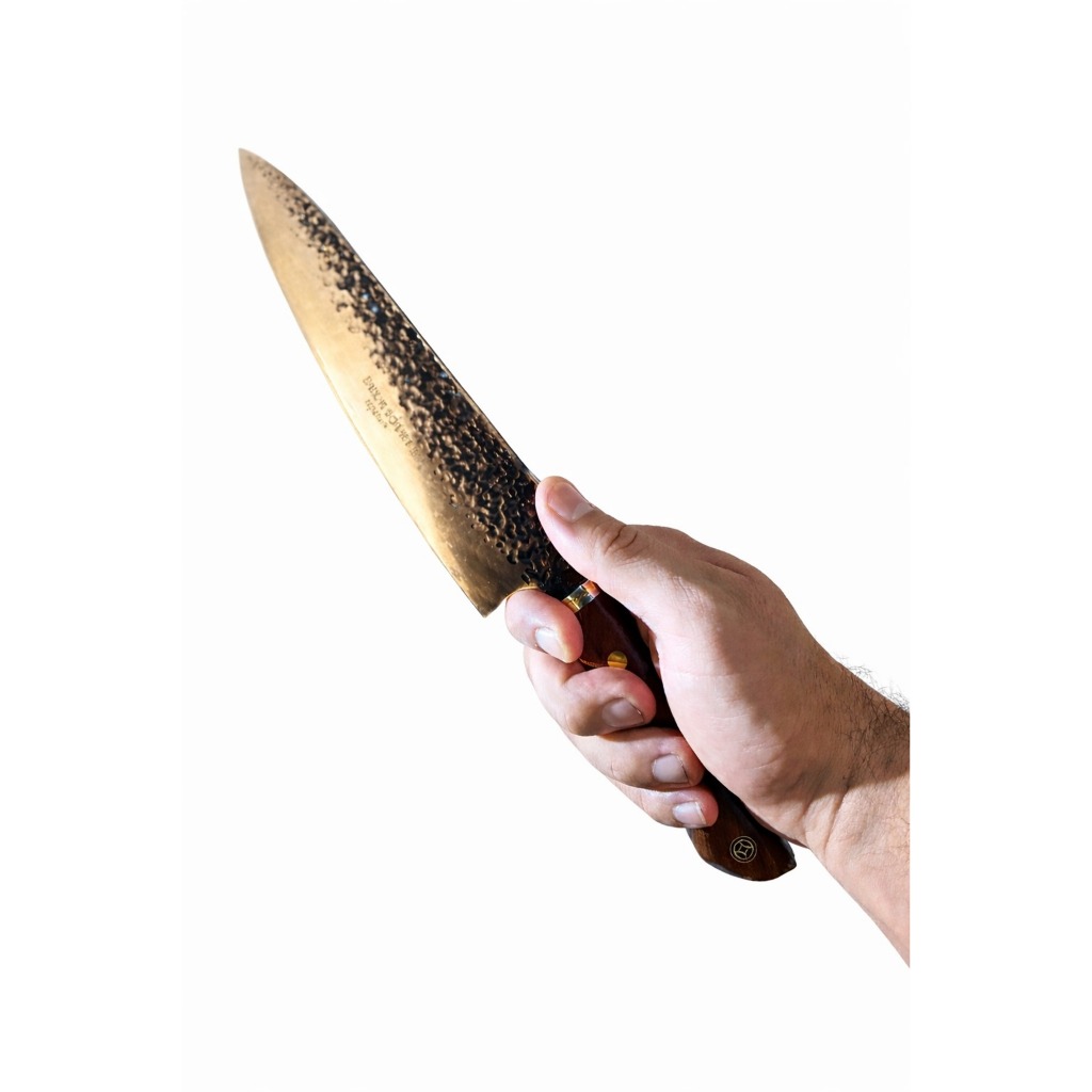 Faca Chef Damasco 33cm Cabo Madeira com Bainha de Couro Artesanal 7371