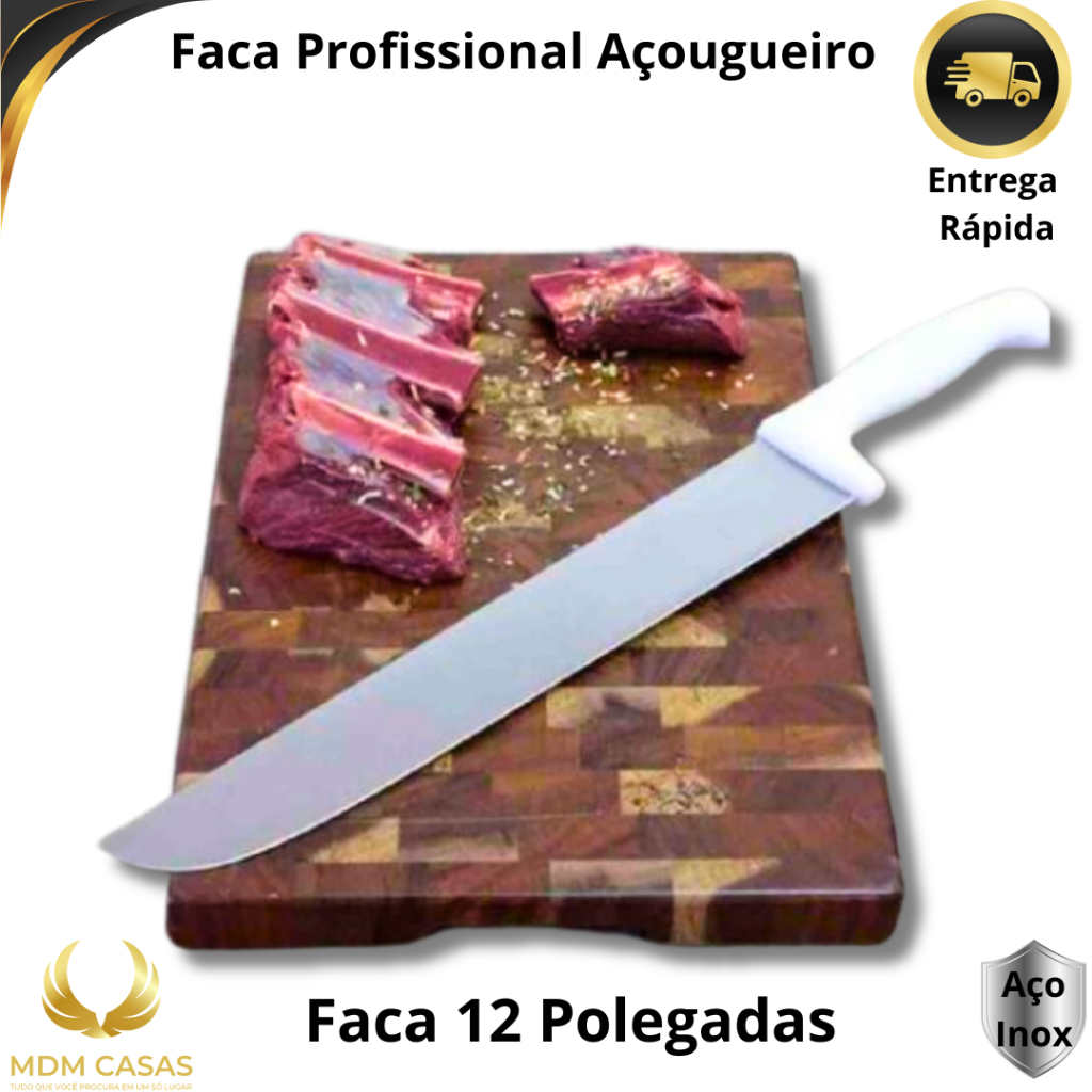 Faca Chef Profissional Aço Inox 12" Carne Churrasco Restaurante Buffet Churrascaria Restaurante