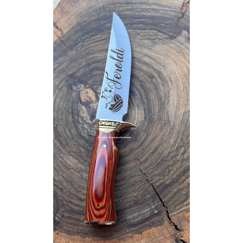 APÓS A COMPRA, ENVIE AS INFORMAÇÕES PARA A GRAVAÇÃO NO CHAT DE MENSAGENS. CASO NÃO RECEBERMOS OS DADOS DA GRAVAÇÃO, OS PRODUTOS SERÃO ENVIADOS SEM PERSONALIZAÇÃO. ################################################# FACA PARA CHURRASCO PERSONALIZADA Especificações: Produto de altíssima qualidade e visual impressionante Extremamente robusta e resistente Afiada e pontiaguda. Ideal para atividades de sobrevivência, acampamentos, trilha, pesca e caça esportiva. - Acompanha bainha - Peso sem bainha: 336 gramas - Total: 32 cm