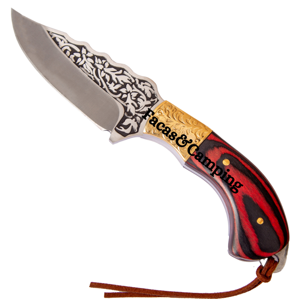 Olá futuro cliente, esperamos que esteja bem. Obrigado pela visita! Essa faca é um modelo full tang, ou seja, a lâmina é inteiriça ao cabo em madeira natural com pomo e detalhe em aço bastante anatômico e ergonômico para as mãos. A lâmina tem o fio liso e bastante afiado e com dorso trabalhado de excelente qualidade e estilo esportivo, excelente para qualquer atividade e por seu tamanho pode ser levada a qualquer lugar. Não enferruja! Usos: Campeira Country Lida de gado Muladeira Churrasco Pesca Cortes de queijos Cortes de carnes Usos gerais da na cozinha Caça Legumes Peixes Frutas Sobrevivência Campings Trilhas Uso tático militar Itens inclusos: - 1 Faca com as especificações acima; - 1 Bainha com passador de cinto. Envios todos os dias, postagens em até 24 horas.