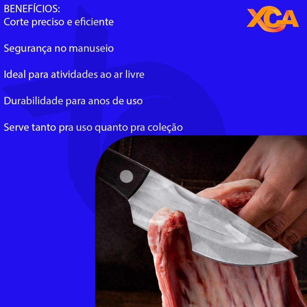 Faca Cutelo Artesanal “Dominus Ferro” — força bruta, controle absoluto e respeito imediato em cada corte. Você já passou pela irritação de uma faca que falha bem na hora decisiva, que exige força demais e ainda assim entrega cortes tortos? Nada destrói mais o clima do churrasco ou da cozinha do que sentir que seu equipamento te limita. A sensação de perda de tempo, esforço desperdiçado e olhar de julgamento dos outros corrói por dentro. Você sabe que poderia entregar mais, mas a ferramenta não acompanha. Isso mata o prazer e transforma o preparo em obrigação. Agora imagine segurar uma lâmina que impõe presença antes mesmo do primeiro corte. O som seco atravessando a carne, o peso perfeito na mão, o controle absoluto em cada movimento. As pessoas param, observam e respeitam. Você sente domínio, segurança e satisfação real. Cozinhar ou assar deixa de ser tarefa e vira demonstração de poder. É por isso que quem escolhe a Dominus Ferro nunca mais aceita menos. O prazer de cortar sem esforço vicia. O desejo de possuir algo superior se torna inevitável. O orgulho cresce quando todos reconhecem sua autoridade. A inveja aparece nos olhos de quem vê e não tem. A preguiça some porque tudo fica mais fácil. A raiva de lâminas ruins desaparece. O excesso vira merecimento. Medidas: 20 cm de comprimento total. Materiais: lâmina artesanal forjada com acabamento rústico e bainha resistente. 🔥 Estoque extremamente limitado — produção artesanal. Garanta agora antes que acabe e fique sem. 💬 Valeu demais por confiar na XCA! A gente fica mais feliz que cliente achando frete grátis! 😄 É um prazerzão atender você, e pode ter certeza: cada pedido que sai daqui vai carregado de cuidado, carinho e aquela energia boa. Se precisar, grita (ou manda mensagem, que funciona melhor 😂). A casa é sua e você pode voltar sempre que quiser — a XCA tá sempre de portas, caixas e sorrisos abertos pra te atender de novo! 💛