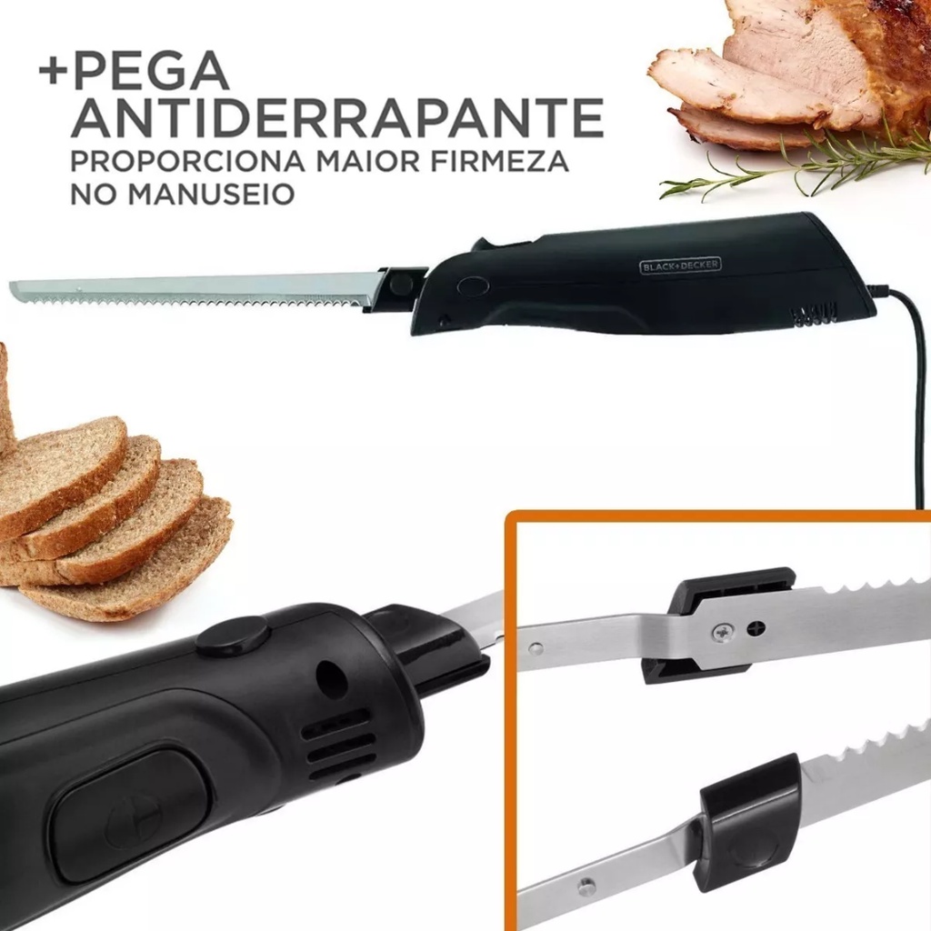 Faca Elétrica Lâminas Aço Inox Removíveis De Cortar Carne Pão Potente Black Decker
