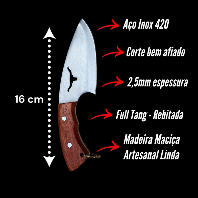 Faquinha Aço Inox 420 - A mais top do Mercado!!!! Oferta válida apenas para primeiras vendas do anúncio, (aproveite o preço) Produzida artesanalmente com materiais de alta qualidade, essa faca campeira oferece lâmina extremamente afiada, com excelente poder de corte e durabilidade. Ideal para uso no campo, churrasco ou coleção. Acompanha bainha em couro legítimo, resistente e elegante, garantindo proteção e praticidade no transporte. Produto robusto, funcional e com acabamento impecável. Medidas: Comprimento Total: 16 cm Comprimento do Cabo: 7 cm Comprimento da Lâmina: 9 cm Espessura da Lâmina: 2,5 mm Enviamos seu pedido em menos de 24 horas após pagamento!!!