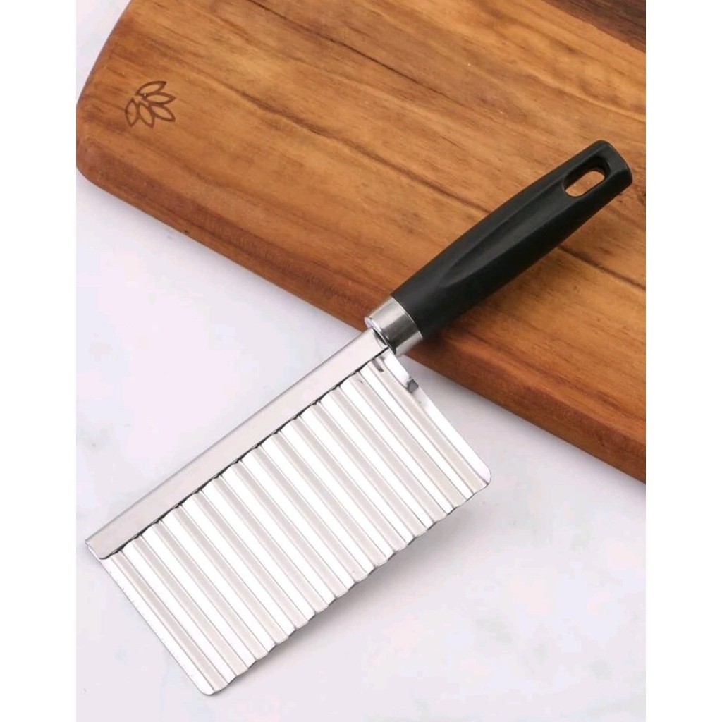 Faca com corte ondulado, perfeita para dar detalhes a verduras e frutas, com intuito de deixar o alimento mais atrativo e bonito. Medidas: Comprimento:20 cm (Cabo 9CM e Lamina 11cm) Altura: 7CM (Cabo 2cm e Lamina 7cm) Largura: 2 cm ( Cabo 2cm e Lamina 1mm)