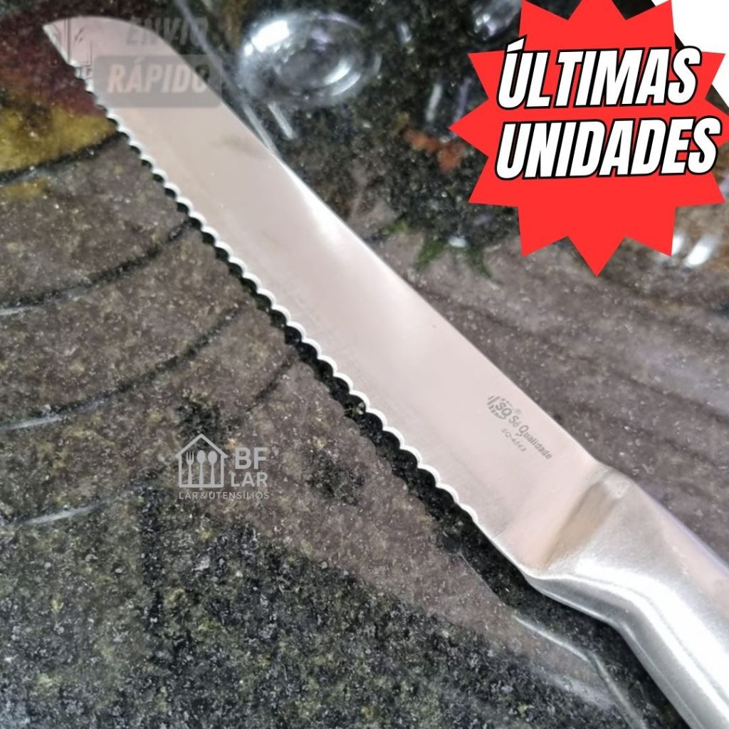 Seja bem Vindo a BF Lar & Utensílios. Conjunto 02 Faca Pão Aço Inox Premium Escovado 8" Cabo Inteiriço 32cm Lâmina Serrilhada Café da manhã Cozinha Premium 🔪 Faca de Pão Inox Texas – Corte Preciso Descubra a Facilidade de Cortar Pães com a Faca Para Pão Inox! O utensílio que combina eficiência e durabilidade em cada fatia. Lâmina de Alta Performance: Com um tratamento térmico especial, a lâmina de aço inox da Faca Para Pão Inox garante um fio afiado por muito mais tempo, dispensando afiações constantes e facilitando o corte de pães com precisão. Higiene e Praticidade: O aço inox não só assegura durabilidade, mas também é resistente e fácil de limpar. Pode ser lavado na máquina de lavar louças, tornando a sua rotina ainda mais prática. 📏 Tamanho ideal: Com dimensões de 32 x 4 cm, essa faca é perfeita para cortar pães de todos os tamanhos, desde baguetes crocantes até pães mais robustos. Obtenha fatias perfeitas para o seu café da manhã, lanches ou refeições em questão de segundos. Durabilidade e Design: O cabo de aço inox oferece uma pegada firme e confortável, combinando com o design elegante e funcional da lâmina, tornando a Faca Para Pão Texas um item indispensável na sua cozinha. ✅ Lâmina serrilhada em aço inoxidável – Alta durabilidade e corte eficiente. ✅ Corte suave e preciso – Ideal para pães macios, cascas crocantes e bolos. ✅ Cabo ergonômico e confortável – Antideslizante, oferece segurança durante o uso. ✅ Design elegante e funcional – Perfeita para uso doméstico ou profissional. 💡 Tenha cortes perfeitos com o mínimo esforço. 🛒 Produto de qualidade | Envio rápido | Pronta entrega