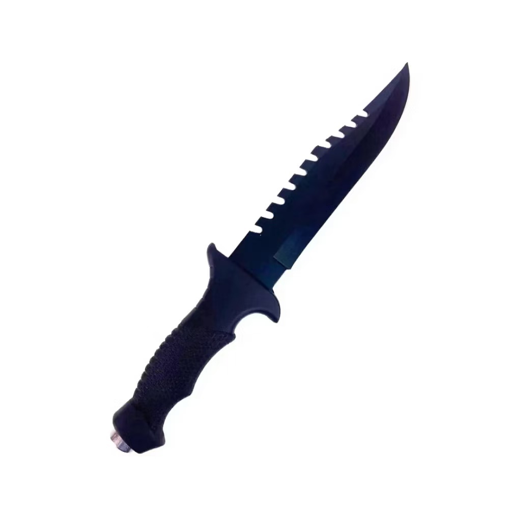 Faca com altíssima qualidade para uso em caça e pesca, no campo, churrascos, em casa feito para uso geral. Possui um ótimo acabamento, feito em aço inox, cabo emborrachado, pino quebra vidro em sua empunhadura, peso e empunhadura perfeito para seu manuseio, bainha de nylon com ótimo acabamento. Especificações: Cabo: Emborrachado Na Cor Preto Lâmina: Aço Inoxidável Na Cor Preto Peso da faca: 204g Peso da faca com bainha: 235g Comprimento da faca: 30 cm Comprimento da Lâmina: 17cm Comprimento do Cabo: 13cm Espessura: 2,56mm Peso da Faca: 204g Peso da Bainha: 31g Itens inclusos: Faca aço inoxidável preta com pino quebra vidro em sua empunhadura Bainha em nylon com passador de cinto Obs: Garantia somente para defeito de fábrica.