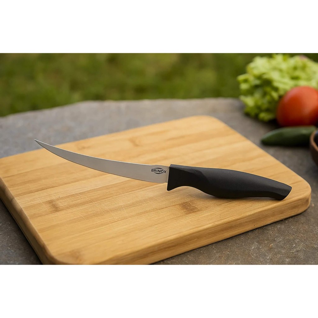 Leveza e praticidade com a Faca para Tomate 5 polegadas (23,2 cm) em aço inoxidável polido, temperado com tratamento térmico e cabo preto Cross Brinox ideal para cortar tomates delicados, sem amassar. É um produto de grande utilidade que completa a sua linha de facas prontas para o uso no seu dia a dia. A faca para tomate possui lâmina em aço inox com fio de corte com maior durabilidade e precisão, que garante o manuseio desse alimento tão delicado, sem o risco de amassá-lo. Pode ser utilizada para cortar e fatiar queijos moles e semiduros. A Faca para Tomate 5 polegadas proporciona uma excelente afiação por um longo período de tempo. Assim como as demais facas da linha Cross, a Faca para Tomate é durável e eficiente durante o uso. Os cabos ergonômicos em polipropileno, na cor preta possuem textura antiderrapante, são ideais para uso diário no preparo dos cortes do tomate, demais legumes delicados, frutas e até mesmo queijos, facilitando a limpeza da faca. É muito leve e segura para cortar, picar e fatiar com precisão. Informações do produto: - ATRIBUTOS TÉCNICOS: Todas as facas entregam durabilidade e eficiência durante o uso, a partir de suas lâminas em aço inoxidável temperadas. Os cabos ergonômicos em polipropileno, na cor preto com textura antiderrapante, são excelentes para uso diário no preparo de alimento, proporcionando maior segurança, equilíbrio e conforto na hora do corte e limpeza da faca. - SITUAÇÕES DE USO: A faca para tomate possui lâmina em aço inox com fio de corte com maior durabilidade e precisão, que garante o manuseio desse alimento tão delicado, sem o risco de amassá-lo. Pode ser utilizada para cortar e fatiar queijos moles e semiduros. - LIMPEZA E CONSERVAÇÃO: Para manter seus produtos de aço inox sempre brilhando, lave-os com esponja macia e sabão ou detergente neutro. Produtos abrasivos como palha de aço e outros, poderão riscar ou prejudicar o brilho. Características: - Marca:Brinox - Modelo:2556/314 *Imagens Meramente Ilustrativas* Conteúdo da Embalagem: - 01 Faca Para Tomate 5” Cross - Preta