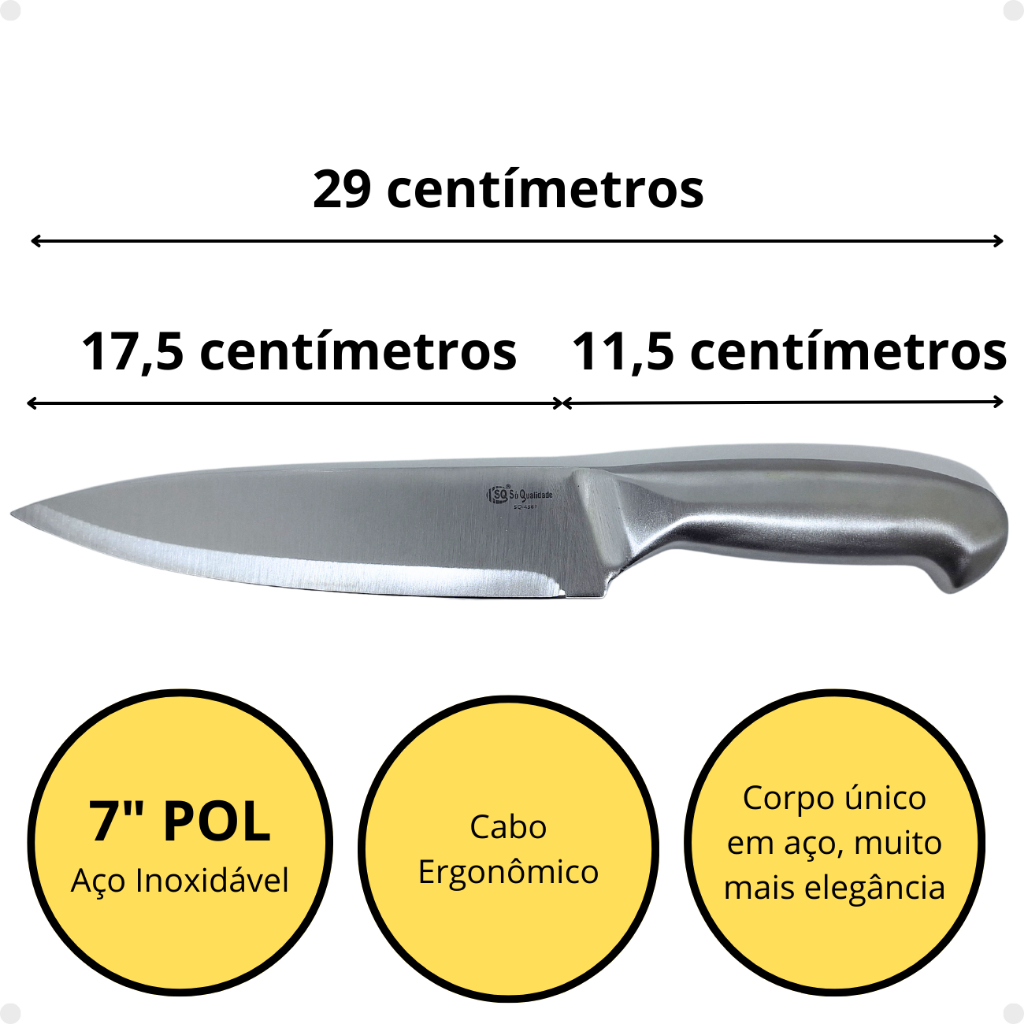 FACA PEIXEIRA 6" ou 7" - Linha Texas Prepare-se para se apaixonar à primeira vista pela nossa Faca Peixeira Linha Texas! Linda, leve e elegante, esta faca é mais do que um utensílio de cozinha, é uma verdadeira obra de arte em aço inoxidável. Antes utilizada apenas para o corte de peixes e frutos do mar, hoje a Faca Peixeira conquista os mais variados chefs gastronômicos. Seja para cortar suas frutas preferidas ou para preparar um churrasco no final de semana, ela se adapta a todas as situações com maestria. Você encontra beleza e leveza em uma só peça: com cabo e lâmina fundidos em uma única peça de aço inoxidável, nossa faca encanta não apenas pela sua beleza, mas também pela sua leveza e facilidade de uso. Cada corte é preciso, suave e limpo, graças à afiação de precisão da lâmina. FICHA TÉCNICA: Composição: Cabo e Lâmina em Aço Inoxidável: Resistência e robustez para uma vida útil prolongada. DIMENSÕES: Faca Peixeira 6" - Linha Texas: -Tamanho Total: 26,5 cm - Lâmina: 15 cm - Cabo: 11,5 cm Faca Peixeira 7" - Linha Texas: -Tamanho Total: 29 cm - Lâmina: 17,5 cm - Cabo: 11,5 cm ITENS INCLUSOS: 01 ou 2 Facas Peixeira 6" ou 7" - Linha Texas (a escolha do cliente) Envio Imediato e Seguro! Com garantia, nota fiscal e suporte do Grupo Vivanto, sua satisfação está garantida desde o momento da compra. Não perca mais tempo! Adquira agora sua Faca Peixeira 7" - Linha Texas e descubra como ela pode adicionar mais sabor e elegância às suas preparações na cozinha. Tem alguma dúvida? Estamos aqui para ajudar! Nos chame no chat e responderemos rapidamente. 😊
