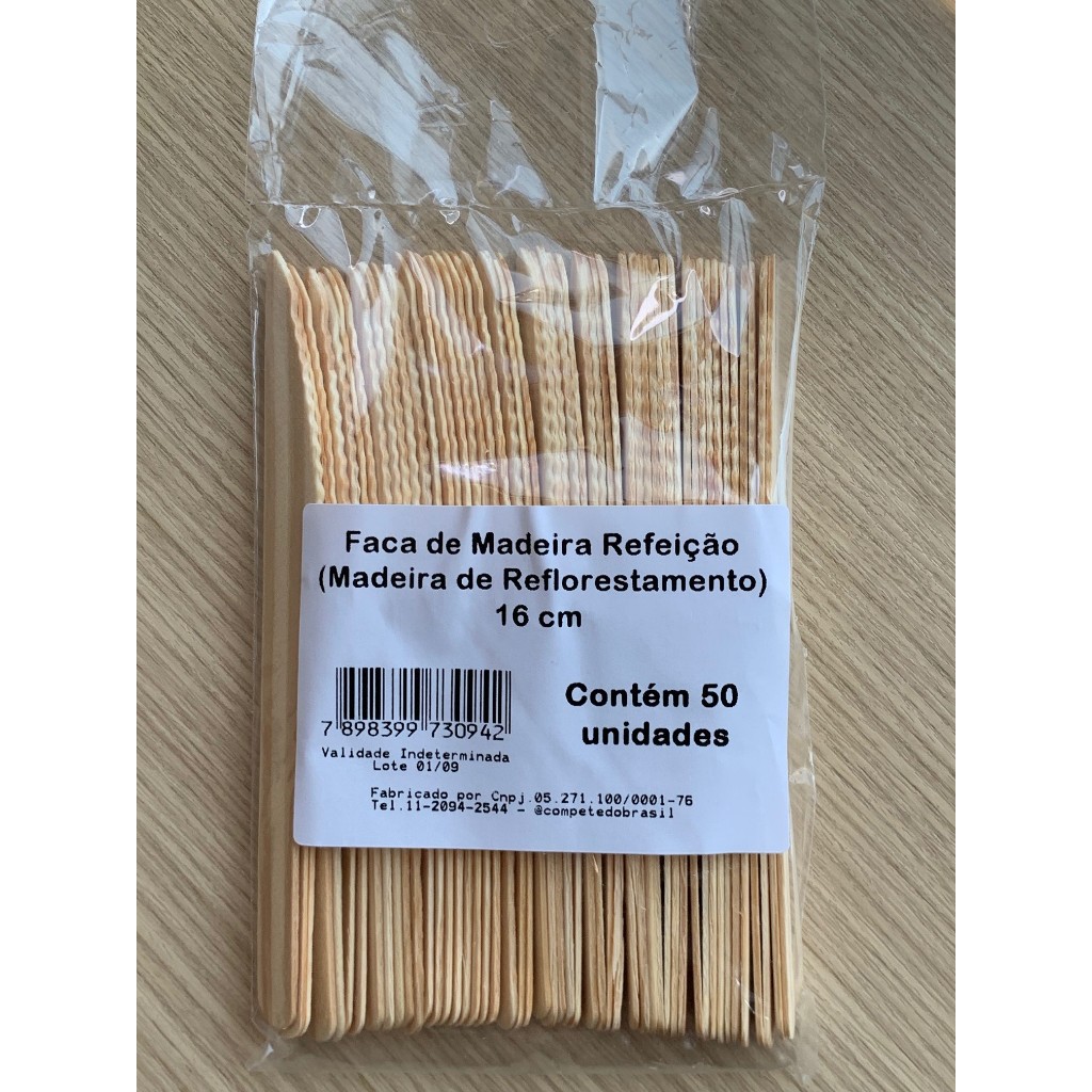 SOMENTE TRABALHAMOS COM PRODUTOS DE QUALIDADE Talher para refeições e sobremesas. SOBRE O PRODUTO: - Faca de Madeira descartável - Embalagem: 1 Pacote com 50 unidades - Tamanho: 16 cm - Cor: Materia prima Madeira - Material: Madeira Pinus 100% de reflorestamento MATERIAL BIODEGRADÁVEL. VAMOS PRESERVAR O PLANETA EMPRESA FABRICANTE 100% NACIONAL , VAMOS FORTALECER NOSSOS PRODUTOS. Qualquer dúvida, estamos à disposição!!