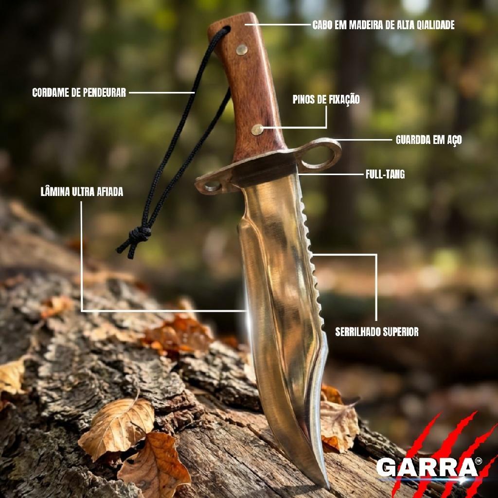 ATENÇÃO FOTOS AUTORAIS REGISTRADAS NO BPP. A CÓPIA DESSAS FOTOS PODE RESULTA EM BLOQUEIO E CANCELAMENTO DO ANÚNCIO. ______________________________________________________ A Faca Tática Garra Pro foi desenvolvida para alto desempenho em atividades outdoor, oferecendo resistência, precisão e durabilidade. Fabricada em aço 440C, proporciona excelente retenção de fio e resistência à corrosão. Seu design full tang garante máxima robustez e segurança durante o uso intenso. Conta com lâmina serrilhada para cortes versáteis, ideal para madeira, cordas e preparo de alimentos em ambientes externos. O cabo em madeira ergonômica oferece firmeza e conforto, enquanto a guarda em aço aumenta a proteção. Acompanha bainha resistente com sistema de encaixe rápido, facilitando o transporte e saque ágil. Indicada para camping, pesca, trilhas e sobrevivência. Perguntas Frequentes: A faca é full tang? Sim, estrutura inteira em aço para maior resistência. Qual material da lâmina? Aço 440C de alta durabilidade e retenção de fio. Acompanha bainha? Sim, bainha resistente com sistema de encaixe rápido. Possui serrilha? Sim, parte serrilhada para cortes variados. É indicada para camping? Sim, ideal para camping, trilhas e sobrevivência. O cabo é antiderrapante? Sim, cabo ergonômico em madeira com boa pegada. Serve para pesca? Sim, pode ser utilizada para preparo de peixes. É resistente à corrosão? Sim, o aço 440C possui boa resistência. Pode cortar madeira? Sim, adequada para tarefas leves e médias. É fácil de transportar? Sim, acompanha bainha para uso seguro e prático.