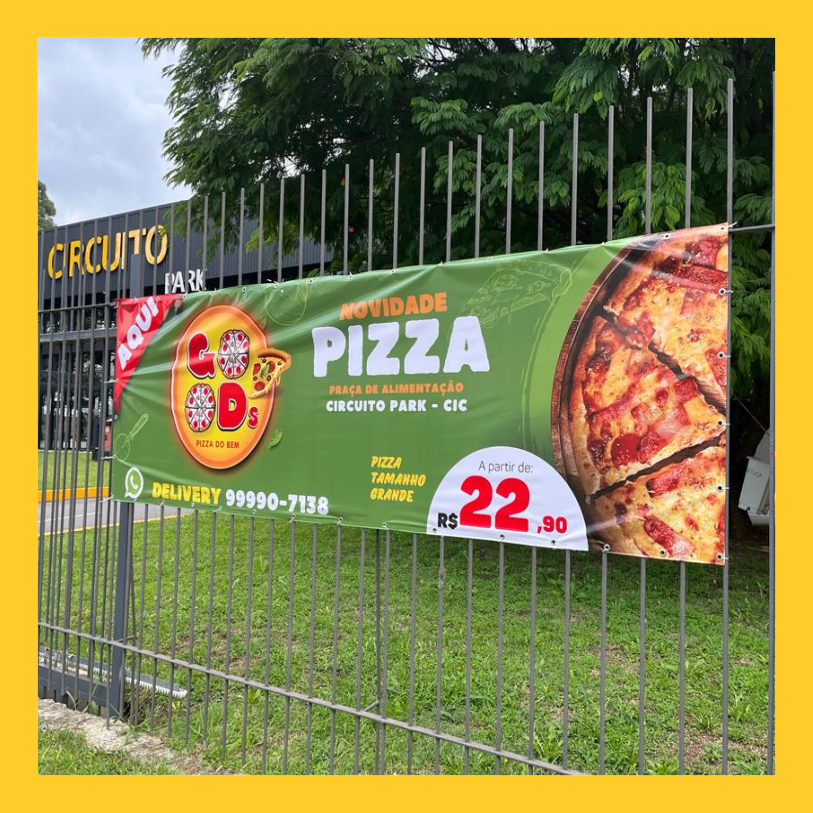Características: - Impressão de alta qualidade com tinta original; - Acabamento em ilhós; - Alta estabilidade. Informações técnicas: - Medida: Você pode selecionar nas variações, caso não tenha o tamanho desejável pode está nos enviando no chat que criamos o anuncio especifico para você - Substrato flexível com base de tela de poliéster - Acabamento: brilho - Gramatura: 380 g/m². - A imagem pode ser horizontal ou vertical - Após o seu pedido é contado um prazo de até 3 dias úteis para o envio da arte para conferência. - Após a confirmação da arte nós colocamos sua arte para produção! Para saber mais sobre o prazo de confecção veja no detalhe do anuncio o prazo que pedimos para o envio. Você poderá acompanhar todo o processo via chat! Qualquer dúvida pode e deve ser feita para nós por lá! Pedimos também que assim que seja feita a compra, o cliente nos informa via chat o que gostaria de imprimir em seu material junto com as informações como cores, telefones, endereços etc! Para uma agilidade no envio dependemos dos dados enviados pelo cliente. Cabe ao cliente CONFERIR todos os dados ANTES de aprovar a arte!