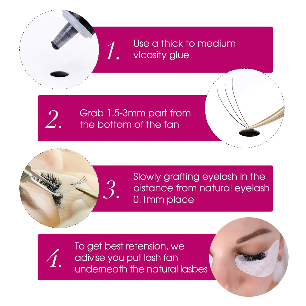 Fadvan 520 Ventiladores/Bandejas Premade Loose Fans 5D/6D/10D/16D Extensão De Cílios Com Haste Afiada Pestanas De Raiz Fina