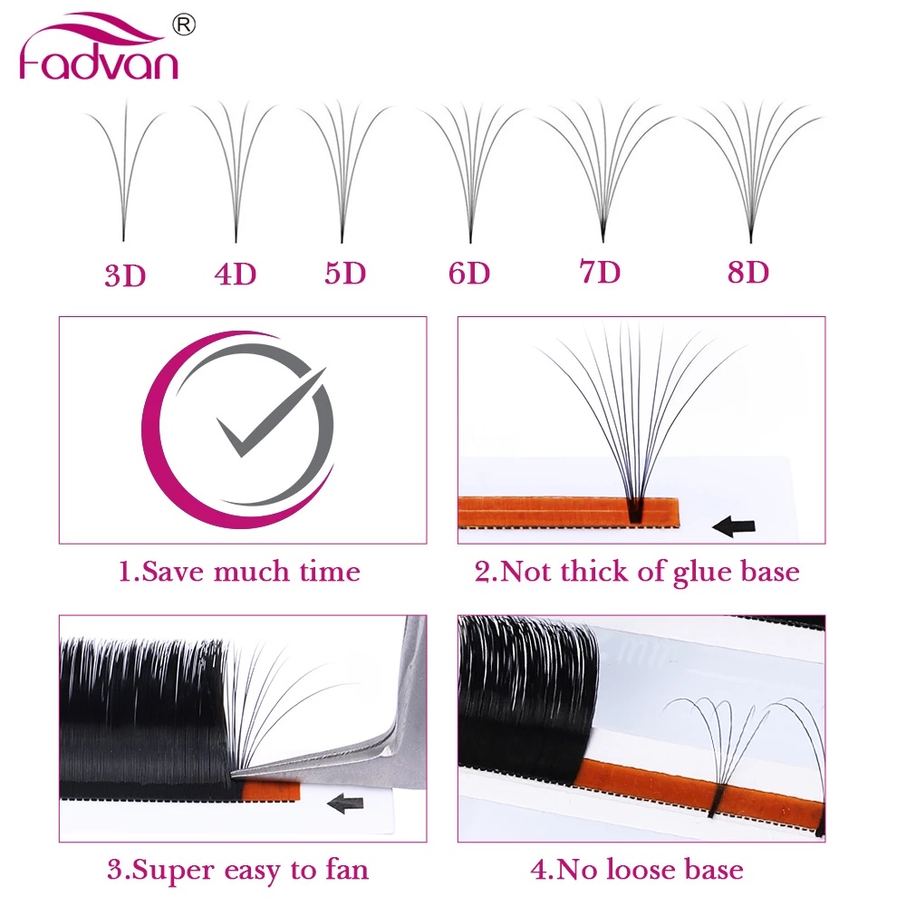 FADVAN Extensões De Cílios Fácil De Enrolamento Flare Volume Russo Automáticas Natural Cilia De Seda