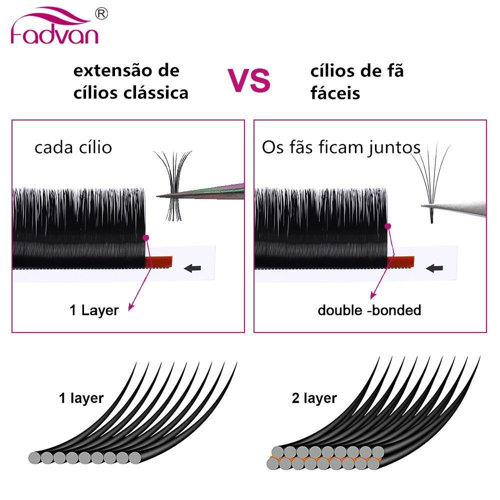 FADVAN Extensões De Cílios Fácil De Enrolamento Flare Volume Russo Automáticas Natural Cilia De Seda