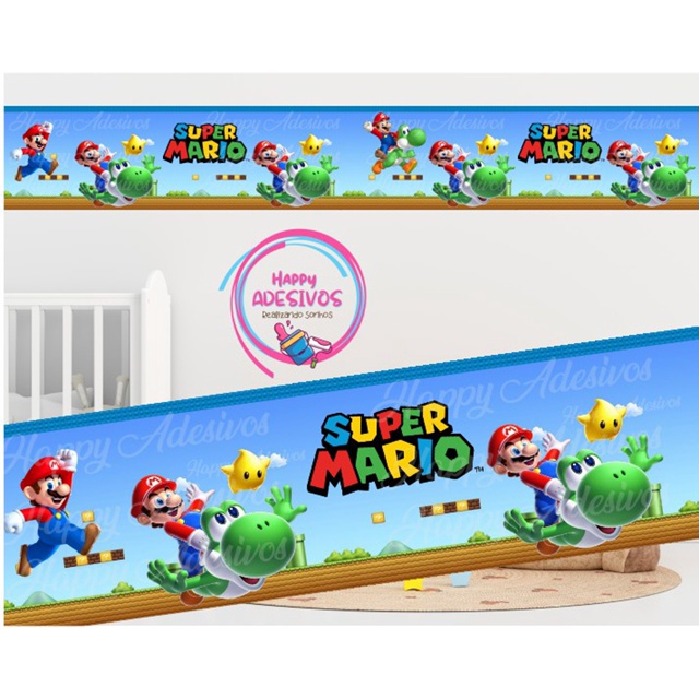 Faixa Adesiva Decorativa para Parede Quarto Menino Infantil Baby Super Mario Bros Gamer Jogo Adesivo