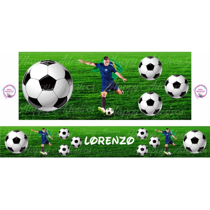 Faixa Adesiva Decorativa Parede Quarto Menino Infantil Futebol Bola Jogador Time Adesivo Decoração