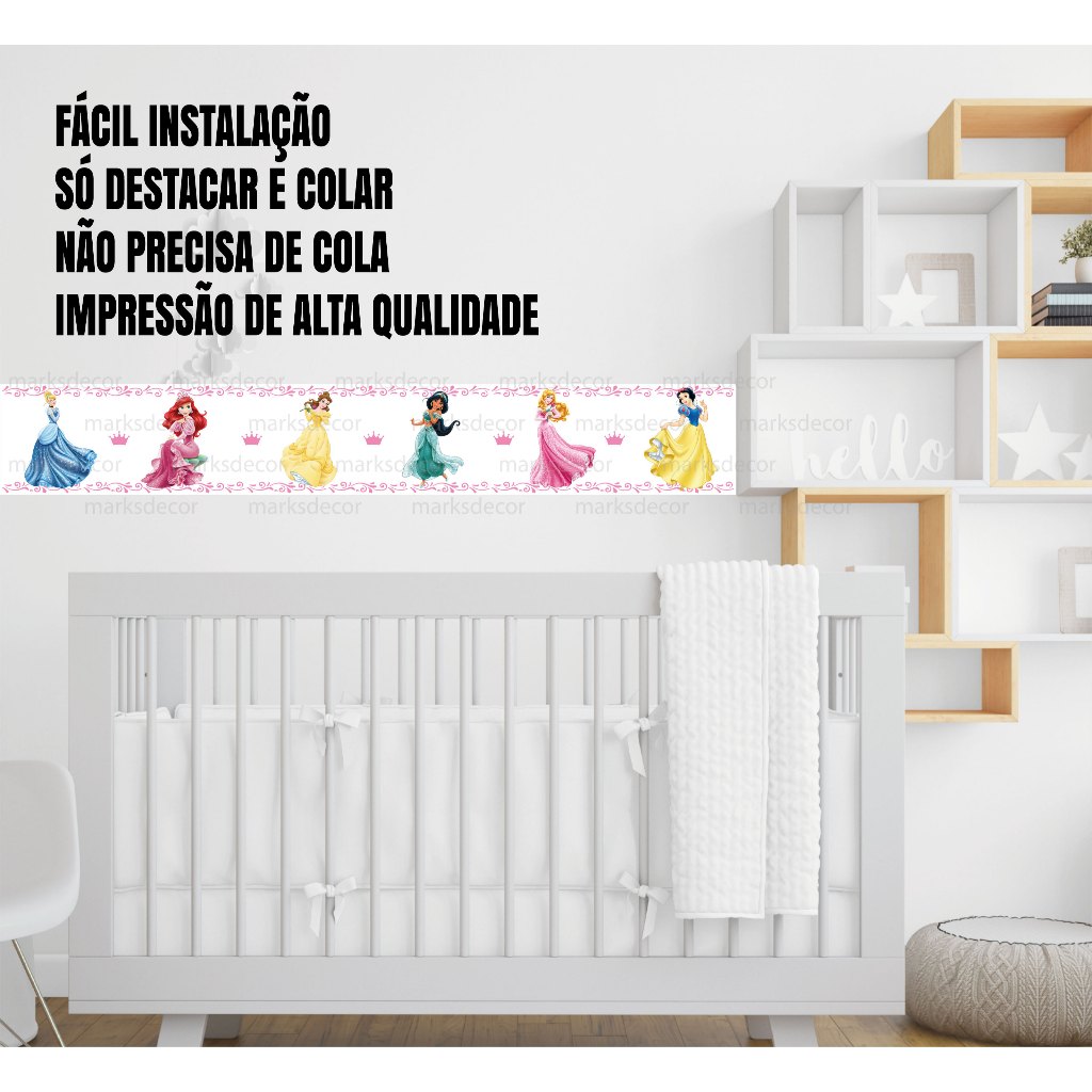 | Faixa Adesivo de Parede Infantil Princesas Papel De Parede Infantil... este produto | R$ 9,86 | 38% | 4.9/5 | 12 |