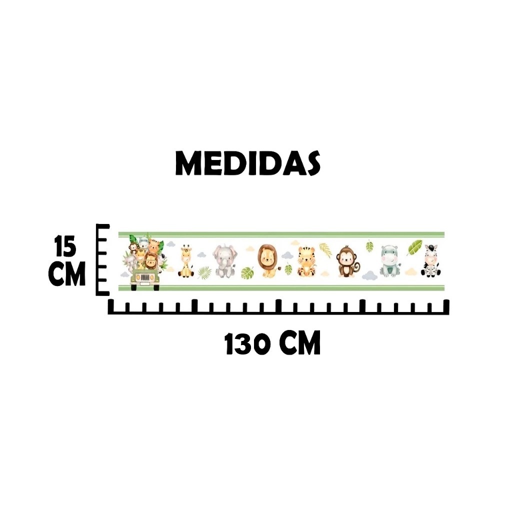 Faixa Decorativa Safari Quarto ( KIT COM 3 METROS ) Faça do cantinho dos seus pequenos um luxo com esse lindo adesivo. Deixe o ambiente gracioso e alegre. Merecem que seu espaço seja decorado com imagens que tragam alegria. O ambiente vai ficar Fashion. Prática, basta destacar e colar. 01 Faixa Adesiva no tamanho de 1metro x 15cm Medida de 1 metro de comprimento por 15cm de altura. O KIT VENDIDO DA A SOMA DE 3 METROS LINEARES Ideal para decoração de quarto infantil, escolinhas, creches, consultórios de pediatria, quarto de brinquedos, estabelecimentos comerciais de produtos infantis, entre outros. Vantagens: - Renove seus ambientes de forma rápida e prática. - Aplicação fácil e sem sujeira, pois não precisa de cola. - Não precisa contratar mão de obra profissional para aplicar. foto meramente ilustrativa