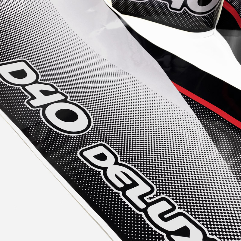 Adesivo Genérico. As faixas decorativas além de determinar, em muitos casos, o modelo do veículo, também personalizam o seu carro e protegem a pintura. Os adesivos são produzidos em vinil automotivo autocolante importado, dispensando a utilização de produtos para a fixação e já possuem verniz automotivo, dessa forma, os adesivos estão protegidas da ação do tempo (Exposição ao sol e a chuva). Kit Faixa Lateral D40 Deluxe 1995/1996 Adesivos Prata - Caçamba MadeiraCores Disponíveis: Azul e Vermelho. CARACTERÍSTICAS: 1 Par De Faixas Laterais / Fabricado em Vinil Branco / Dimensões: 234,5 x 28,6 cm Quantidade: 1 Jogo de Faixas Laterais Observações: Material autocolante. Resistente à chuva e raios UV. Embalagem segura para o transporte. Vinil importado. Instruções Para Aplicação: 1 - Limpe e remova qualquer impureza na área de aplicação do produto. 2 - Limpe as mãos e remova o protetor do liner. Procure ter o mínimo de contato com a face adesiva. 3 - Centralize o produto no local da aplicação. Após esse posicionamento, pressione o produto gradativamente, sempre do centro para as bordas. Procure retirar todas as bolhas. 4 - Após finalizar a instalação, não tente retirar a peça para reposicioná-la, pois isso danificará o produto. OBS: Para limpeza e conservação do produto, utilize apenas água e sabão neutro e/ou automotivo. Recomendamos que a aplicação seja feita por um profissional. Garantia de 1 ano.