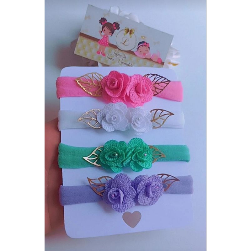 Faixa de bebê Maria Flor menina acessórios laço lindo tiara recém confortável enxoval gestante RN promoção artesanal
